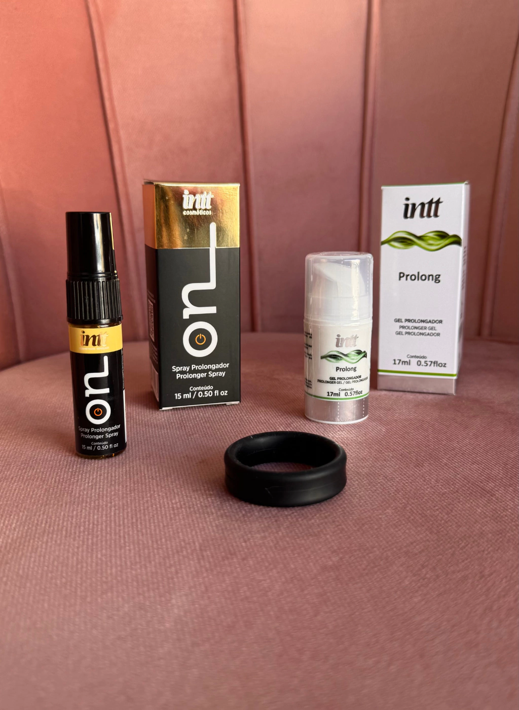 O que oferece? Este kit incrível inclui o gel Prolong, que atua como um leve dessensibilizante, diminuindo a sensibilidade da pele e proporcionando maior controle durante a relação sexual. Com seu efeito gelado, ele garante que você dure mais tempo sem sufoco!